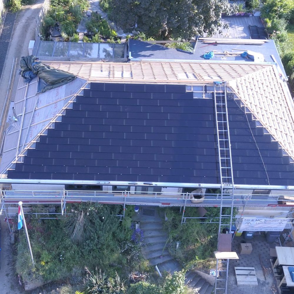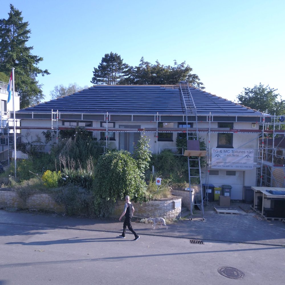 E Projet, deen ech zesumme mat menger Fra virun 2 Joer initiéiert hunn. Beim renovéiere vun onsem Haus soll och den Daach nei gemaach gi mat enger Photovoltaikanlag. Well awer onsen Daach net optimal ass wéinst de villen Verwéncklungen huet ons d’Solutioun vun engem Photovoltaikdaach, also d’Photovoltaik direkt am Daach integréiert, am Beschten gefall.